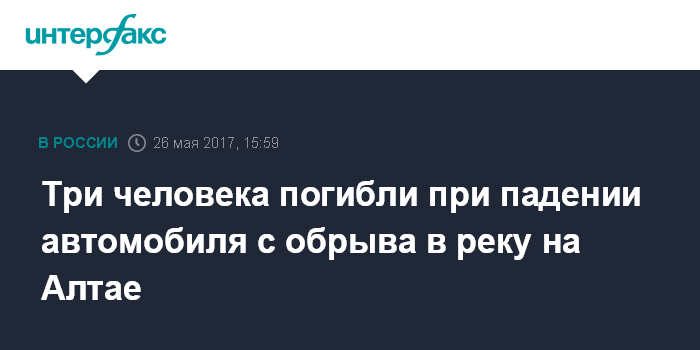 Москва. 26 мая. INTERFAX.RU - Женщина и двое детей погибли в Змеиногорском районе Алтайского края в результате падения легкового автомобиля в реку, сообщает пресс-служба Главного управления МВД РФ по региону.