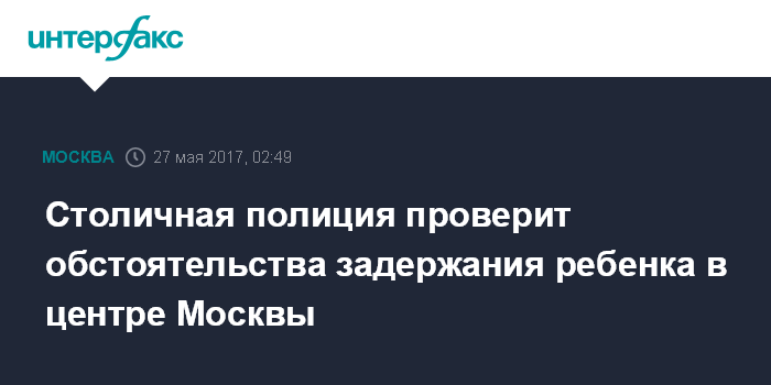 Москва. 27 мая. INTERFAX.RU - Руководство управления внутренних дел по Центральному административному округу Москвы проверит действия полицейских, забравших девятилетнего ребенка, гулявшего в центре города.