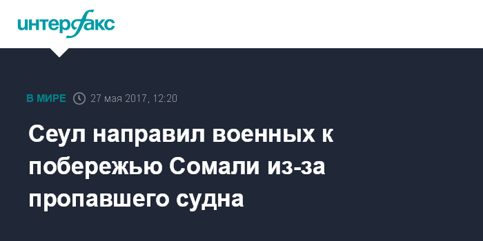Сеул направил военных к побережью Сомали из-за пропавшего судна
