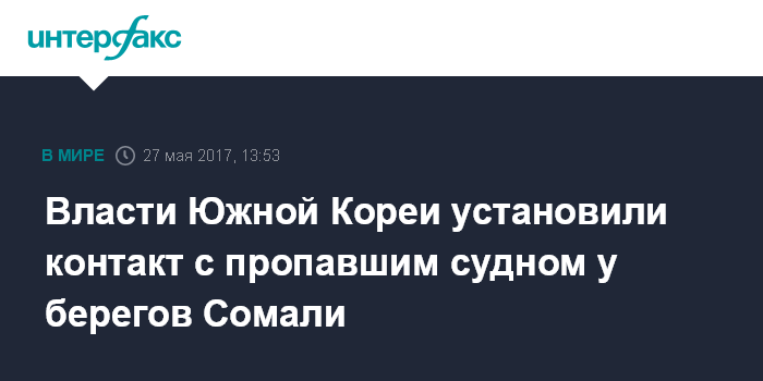 Москва. 27 мая. INTERFAX.RU - МИД Южной Кореи сообщил в субботу, что команда рыболовецкого судна, в которой есть граждане страны, находится в полной безопасности.