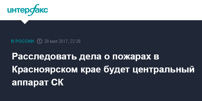 Москва. 28 мая. INTERFAX.RU - Уголовные дела о последствиях лесных пожаров в Красноярском крае по указанию председателя Следственного комитета России (СКР) Александра Бастрыкина приняты к производству центральным аппаратом ведомства, сообщила официальный представитель СКР Светлана Петренко.