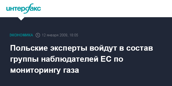 Польские эксперты войдут в состав группы наблюдателей ЕС по мониторингу газа