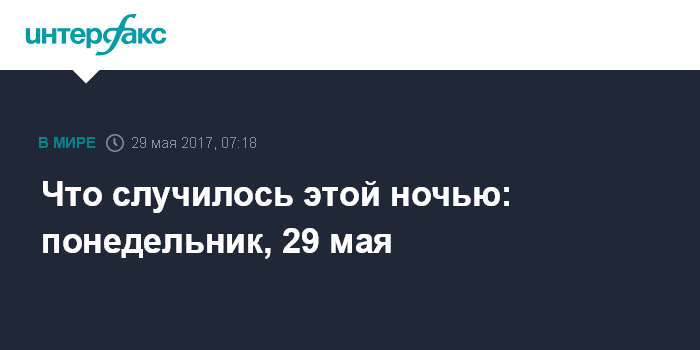 Москва. 29 мая. INTERFAX.RU - Краткая сводка событий, произошедших к утру: