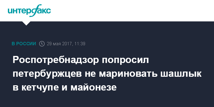 Москва. 29 мая. INTERFAX.RU - Специалисты управления Роспотребнадзора по Петербургу посоветовали жителям города внимательно подходить к подготовке мяса для шашлыка.