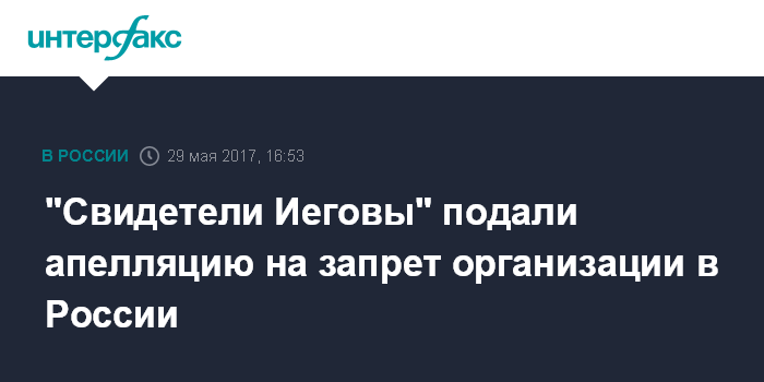 Москва. 29 мая. INTERFAX.RU - Российские "Свидетели Иеговы" оспорили решение Верховного суда России о признании организации экстремистской и ее ликвидации на территории РФ, сообщил "Интерфаксу" их представитель Ярослав Сивульский.