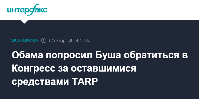 Обама попросил Буша обратиться в Конгресс за оставшимися средствами TARP