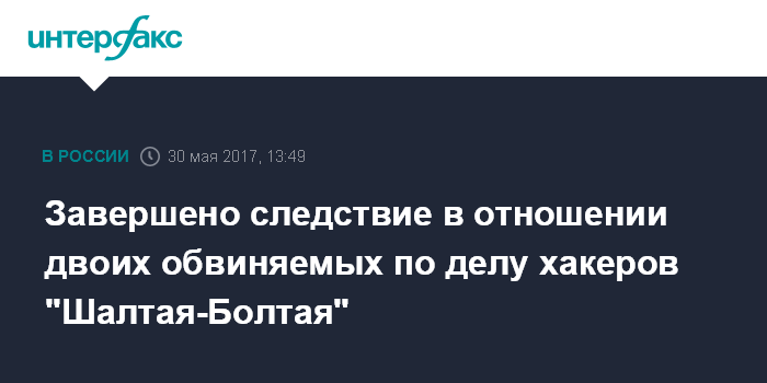 Завершено следствие в отношении двоих обвиняемых по делу хакеров "Шалтая-Болтая"