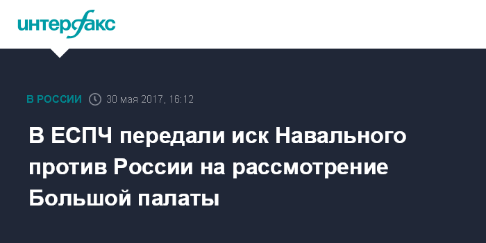 "29 мая 2017 года панель Большой палаты приняла запрос как господина Навального так и российских властей о том, чтобы дело было передано на рассмотрение Большой палаты", - отмечается в распространенном во вторник документе.