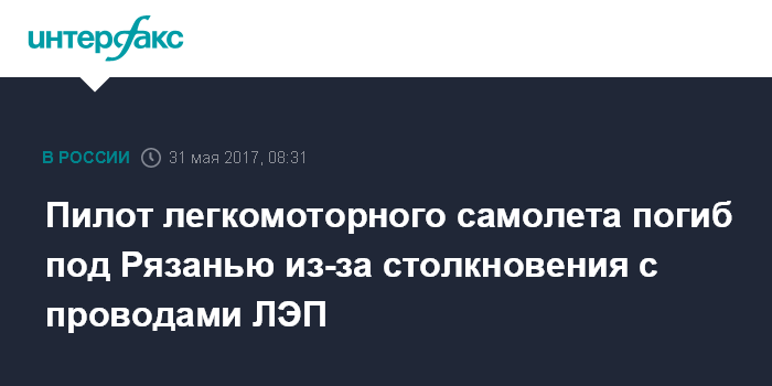 "Легкомоторный выполнял несанкционированный полет и в 15 км от Рязани столкнулся с проводами ЛЭП, рухнул на землю и развалился на части, пилот не выжил", - сказал собеседник агентства.