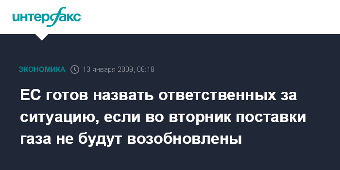 ЕС готов назвать ответственных за ситуацию, если во вторник поставки газа не будут возобновлены