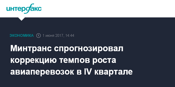 Москва. 1 июня. INTERFAX.RU - Минтранс РФ ожидает "коррекции" темпов роста авиаперевозок в IV квартале 2017 г., заявил журналистам глава ведомства Максим Соколов в кулуарах ПМЭФ-2017.