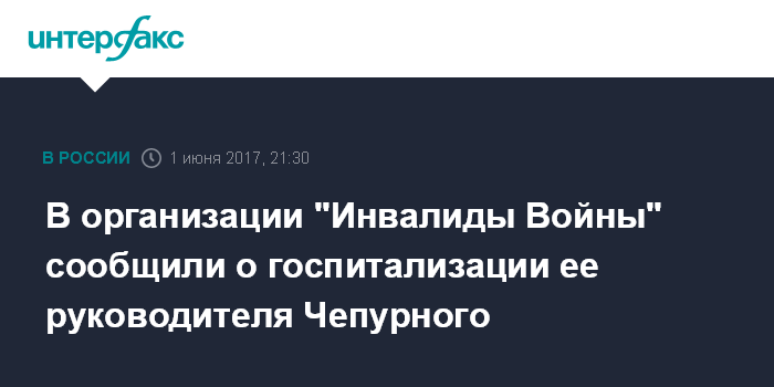В организации "Инвалиды Войны" сообщили о госпитализации ее руководителя Чепурного