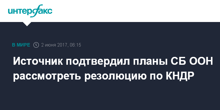 Ранее СМИ со ссылками на дипломатические источники сообщили, что СБ ООН может в пятницу рассмотреть проект резолюции по КНДР.