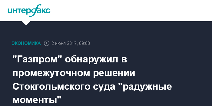 "Газпром" обнаружил в промежуточном решении Стокгольмского суда "радужные моменты"