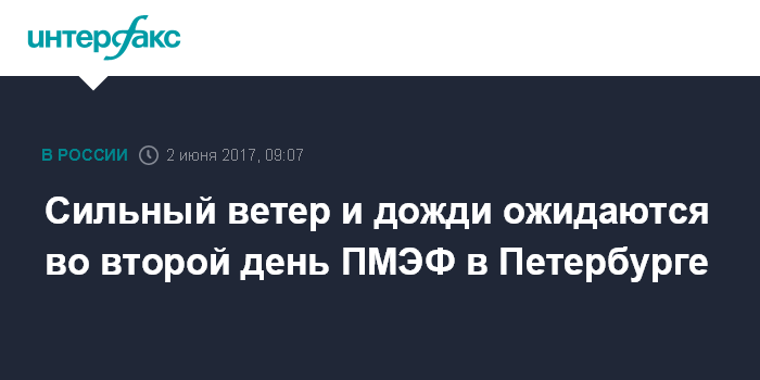 Москва. 2 июня. INTERFAX.RU - Основной день работы Петербургского международного экономического форума пройдет при сильном ветре и дождливой погоде.
