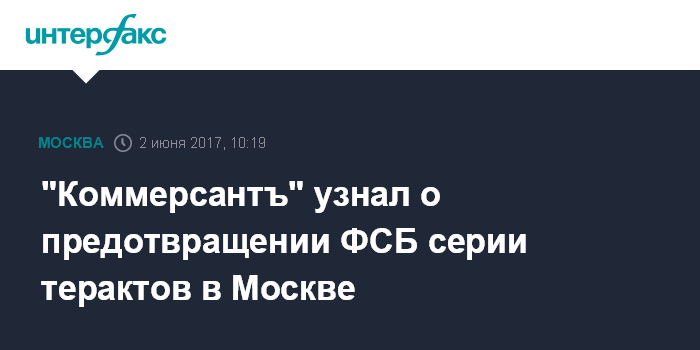 "Коммерсантъ" узнал о предотвращении ФСБ серии терактов в Москве