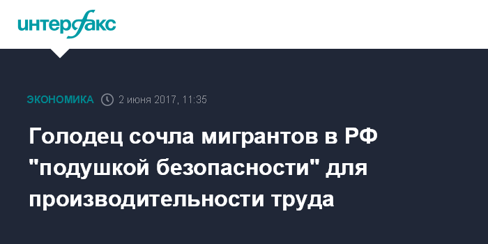 Москва. 2 июня. INTERFAX.RU - Поддерживаемый правительством РФ рост рождаемости в стране и приток мигрантов позволяет поддерживать рост производительности труда, заявила вице-премьер Ольга Голодец.