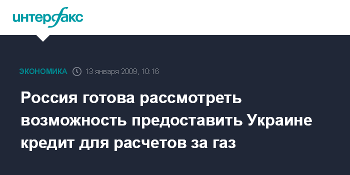 Россия готова рассмотреть возможность предоставить Украине кредит для расчетов за газ