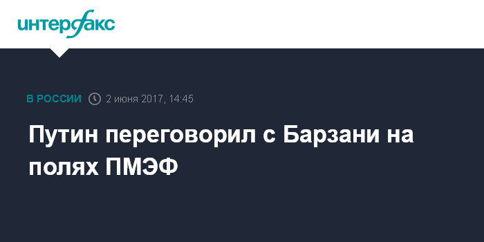 Ранее в пятницу Барзани заявил, что обсудил с главой МИД РФ Сергеем Лавровым расширение сотрудничества с РФ в различных сферах, в том числе в области энергетики. "У нас длинная история отношений с Россией, и в Санкт-Петербурге у нас есть возможность расширить наше взаимодействие во всех сферах - политической, экономической, а также в области энергетики", - сказал Барзани журналистам в кулуарах ПМЭФ.