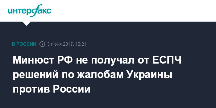 Минюст РФ не получал от ЕСПЧ решений по жалобам Украины против России