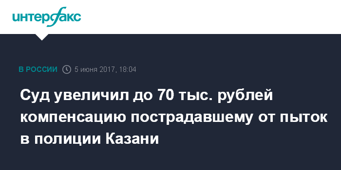 Суд увеличил до 70 тыс. рублей компенсацию пострадавшему от пыток в полиции Казани
