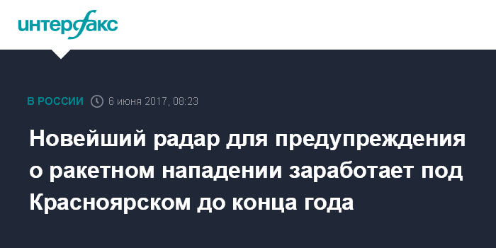 Новейший радар для предупреждения о ракетном нападении заработает под Красноярском до конца года