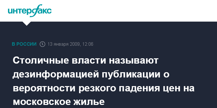 Москва. 13 января. INTERFAX.RU - Московский градоначальник категорически не согласен с публикациями в СМИ, предсказывающими резкое падение цен на жилье в ближайшее время.