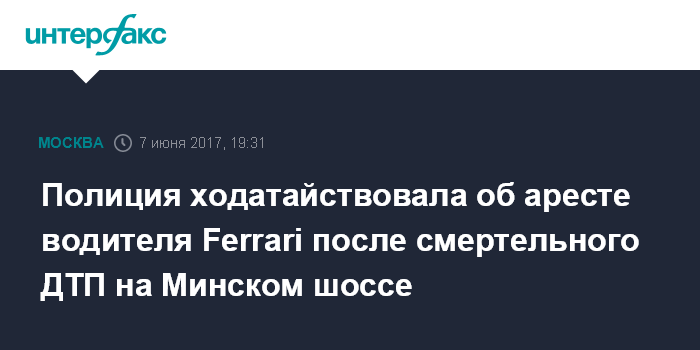 Полиция ходатайствовала об аресте водителя Ferrari после смертельного ДТП на Минском шоссе