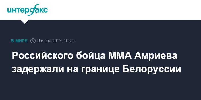 Москва. 8 июня. INTERFAX.RU - Государственный пограничный комитет Белоруссии подтверждает задержание бойца смешанных боевых единоборств (ММА) Мурада Амриева.