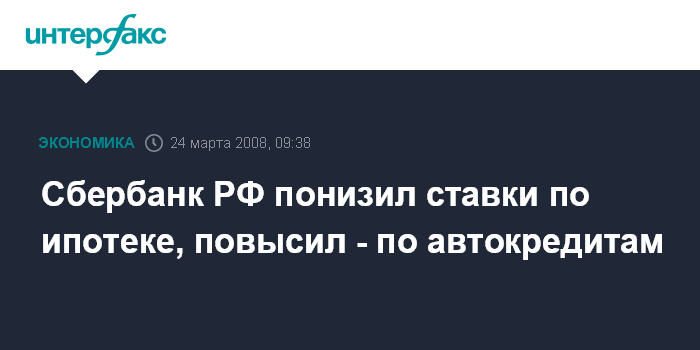 Сбербанк РФ понизил ставки по ипотеке, повысил - по автокредитам