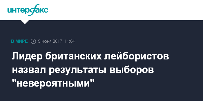 Москва. 9 июня. INTERFAX.RU - Лидер британских лейбористов Джереми Корбин считает, что его партии удалось добиться невероятного успеха на досрочных парламентских выборах.