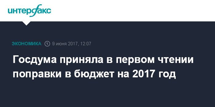 Москва. 9 июня. INTERFAX.RU - Госдума на заседании в пятницу приняла в первом чтении поправки в закон о федеральном бюджете на 2017 год и плановый период 2018-2019 годов, дефицит сокращается с 3,2% до 2,1%.
