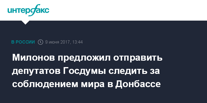 Милонов предложил отправить депутатов Госдумы следить за соблюдением мира в Донбассе