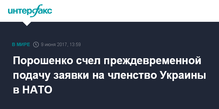 Москва. 9 июня. INTERFAX.RU - Президент Украины Петр Порошенко заявил, что подпишет закон о восстановлении курса страны на членство в НАТО, однако перед подачей заявки надо провести реформы, чтобы Украина соответствовала критериям альянса.