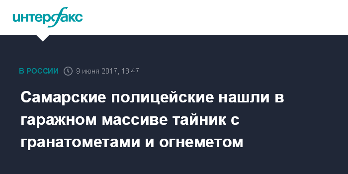 Москва. 9 июня. INTERFAX.RU - Полиция обнаружила тайник с оружием и боеприпасами в заброшенном гаражном массиве в Самаре, сообщает пресс-служба главного управления МВД РФ по региону в пятницу.