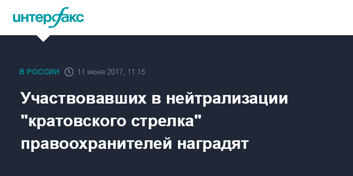 Москва. 11 июня. INTERFAX.RU - Сотрудники правоохранительных органов, которые участвовали в нейтрализации так называемого "кратовского стрелка", будут награждены, сообщает в воскресенье департамент по взаимодействию со СМИ и институтами гражданского общества Росгвардии.