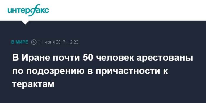 Москва. 11 июня. INTERFAX.RU - Иранские власти арестовали не менее 49 человек по подозрению в причастности к организации двух взрывов в Тегеране, сообщили СМИ.