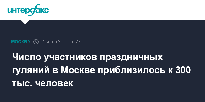 Число участников праздничных гуляний в Москве приблизилось к 300 тыс. человек