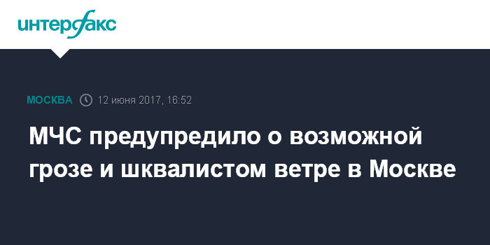 Москва. 12 июня. INTERFAX.RU - Главное управление МЧС России по Москве экстренно предупреждает о неблагоприятных погодных условиях в понедельник вечером в столице.