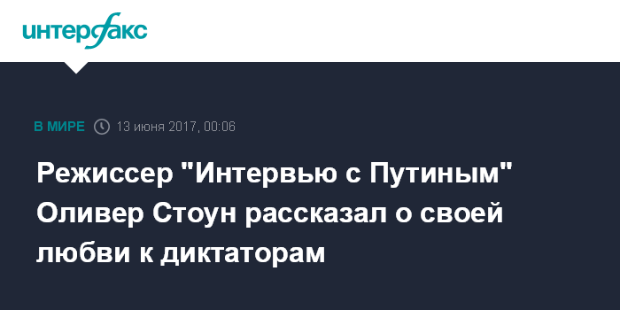 Стоун, комментируя одно из мнений о нем, что он "подстраивается под диктаторов", "сказал с саркастической улыбкой": "Я просто люблю диктаторов. Действительно".