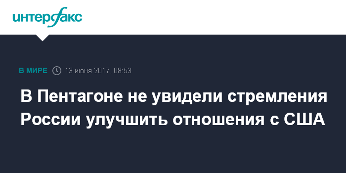 Москва. 13 июня. INTERFAX.RU - Министр обороны США Джим Мэттис заявил, что не усматривает стремления России к улучшению отношений с Соединенными Штатами.