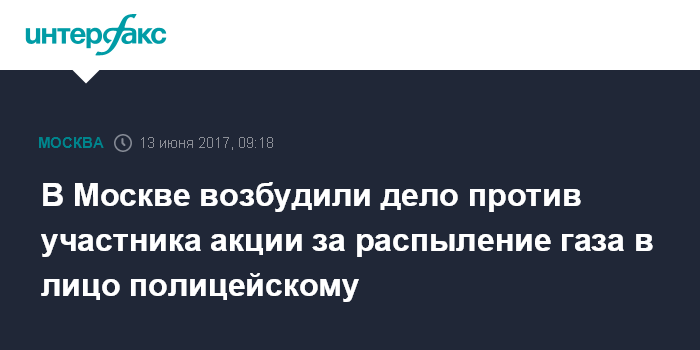 В Москве возбудили дело против участника акции за распыление газа в лицо полицейскому