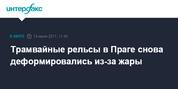 Москва. 13 июня. INTERFAX.RU - Трамвайные пути в пражском районе Либень в понедельник не выдержали сильной жары, и температурная деформация рельсов приостановила движение трамваев на несколько часов.
