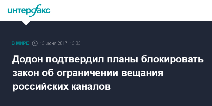 Ранее во вторник Демократическая партия Молдавии зарегистрировала законодательную инициативу о "борьбе с российской пропагандой". Законопроект предусматривает запрет на трансляцию информационных, политико-аналитических и военных программ, произведенных в странах, которые не ратифицировали Конвенцию о трансграничном телевидении.