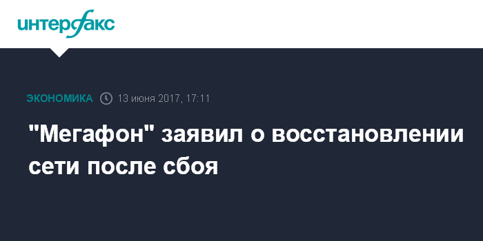 Москва. 13 июня. INTERFAX.RU - Работа сети "Мегафона" восстановлена после сбоя, сообщила пресс-служба оператора.