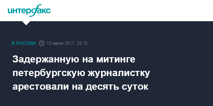 Задержанную на митинге петербургскую журналистку арестовали на десять суток