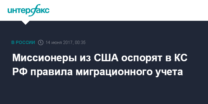 Миссионеры из США оспорят в КС РФ правила миграционного учета