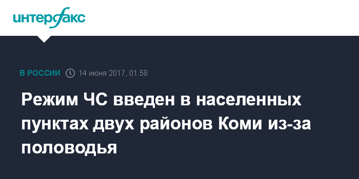 Москва. 14 июня. INTERFAX.RU - В Усинске и пяти населенных пунктах Усть-Цилемского района Коми введен режим ЧС в связи с половодьем, подтоплено более 40 жилых домов, школа, пекарня, котельная, клуб и участок трассы. Как сообщает пресс-служба администрации Усинска, в результате подъема воды в деревне Захарвань оказались подтоплены 14 жилых домов и пекарня, поэтому хлеб будут завозить по мере необходимости из села Щельябож. В деревне Васькино подтоплены четыре жилых дома, в селах Мутный Материк и Усть-Уса - по одному.