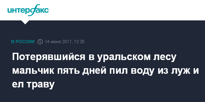 По словам собеседника агентства, на протяжении пяти дней мальчик питался травой. "Он питался пестиками, пил воду из лужи, ел траву", - добавил Песков.