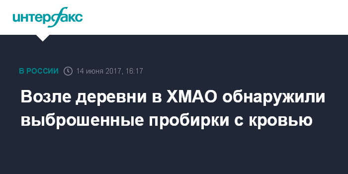 Москва. 14 июня. INTERFAX.RU - Прокуратура в Ханты-Мансийском автономном округе проводит проверку по факту обнаружения возле деревни Ушья Кондинского района пробирок с кровью, сообщили "Интерфаксу" в пресс-службе надзорного ведомства.